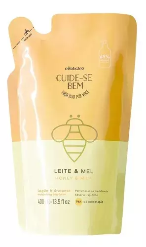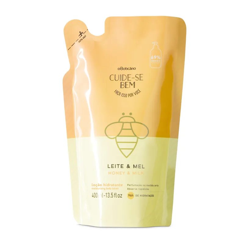 ORefil Hidratante Corporal Cuide-se Bem Leite e Melrepõea sua loção hidratante favorita de formaprática, econômica e sustentável, já que utiliza menos plástico que a embalagem regular. Sua fragrância doce e suave, perfuma seu corpo na medida certa, graças aos extratos naturais de leite e mel.