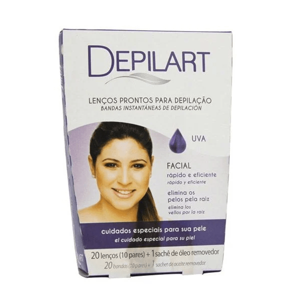 *Folhas de Cera Depilatórias Prontas Depilart 20 Lenços + 1 Sachê de Óleo Removedor