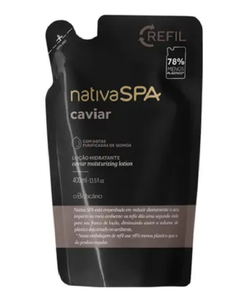 ORefil Nativa SPA Loção Desodorante Hidratante Corporal Caviar, 400 mlé uma forma econômica e sustentável de repor o conteúdo de sua loção preferida.